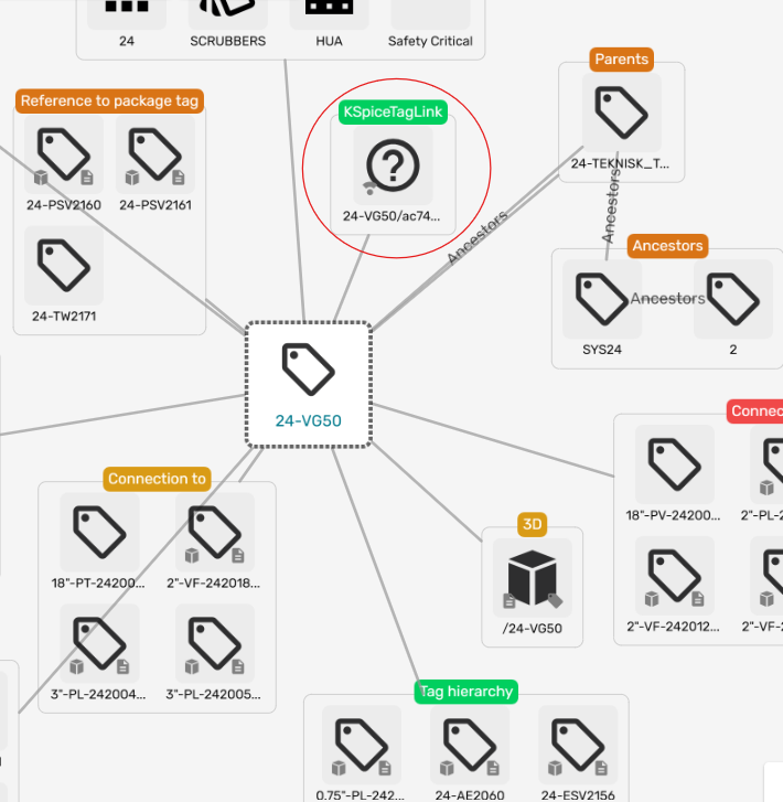 The user can also explore the exact tag relations using the Kognitwin Graph View. Here, the time-series tags produced by the Simulation show up as a separate collection item in the EDW tag view: