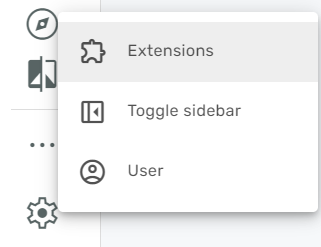 To enable simulation specific configuration, the simulation extension needs to be enabled from the settings menu. This can be achieved by clicking on the cog-wheel and then selecting extensions: